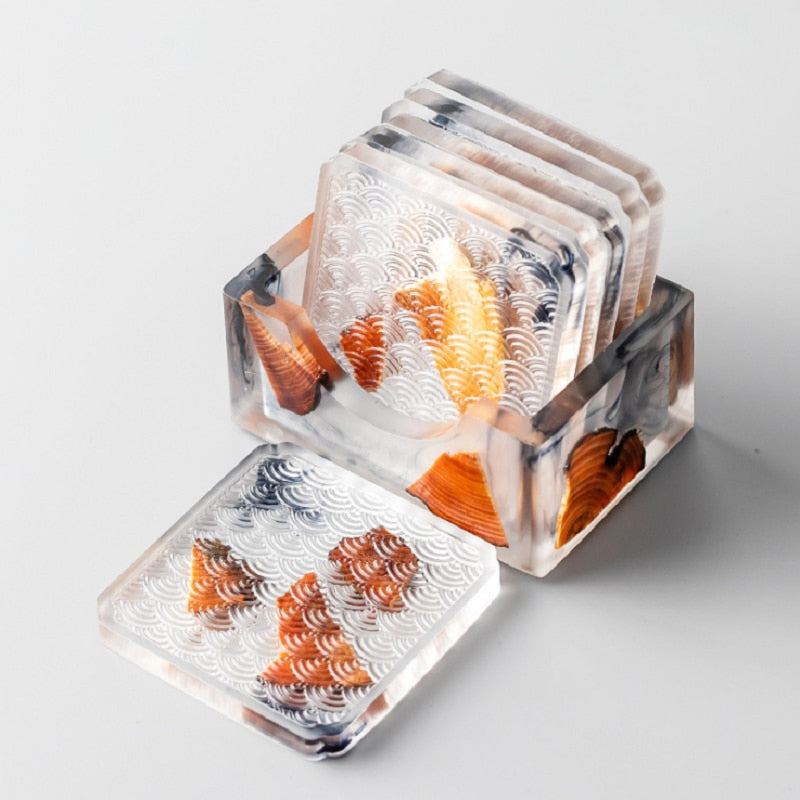 Beautifully detailed and featuring a textured wave pattern embossing that adds depth and dimension to the overall aesthetic, this Wood & Colored Resin Coasters Set will surely add a distinct flair to your hosting style. Let your guests marvel at these truly eye-catching coasters that offer function and eclectic style in its compact package.